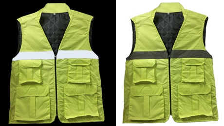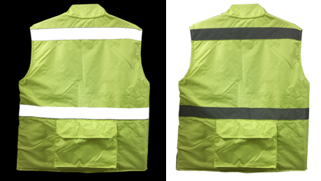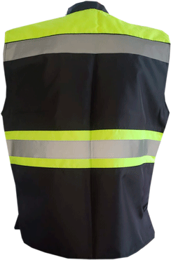 En un la espalda lleva dos tiras de reflejante textil color gris