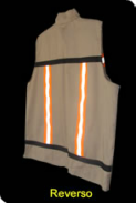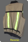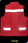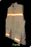 Chaleco Ejecutivo con Solapa por la parte de enfrente y espalda 100% Reflejante, fabricado en tela de gabardina 100% Algodón y con un forro interno de malla.Por la parte de enfrente tiene un porta radio y una lapicera, dos bolsas de cargo grandes con reflejante (una franja en cada bolsa), además de un cierre al frente escondido por una aletilla que lleva botones metálicos.