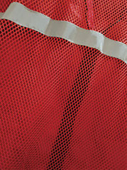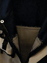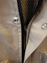 Por la espalda con malla calado puck del mismo color de la gabardina.