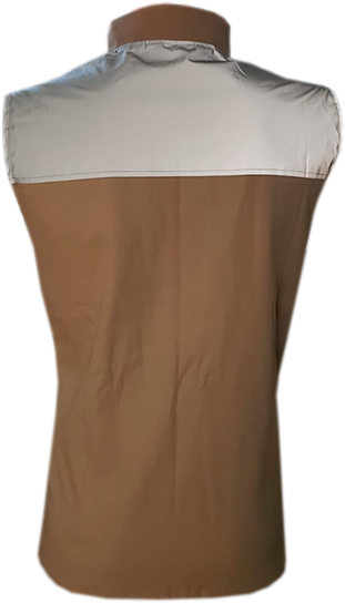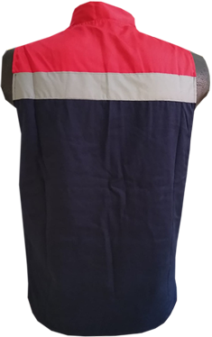 Chaleco Ejecutivo bi color en gabardina 100% algodón en combinación de dos tonos de tela gabardina, con un forro interno de malla, con cierre y boton metalico al frente