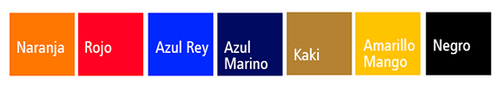 COLORES: MARINO (linea) Naranja, Kaki, Rojo, Negro.