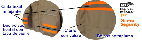 Fabricado en tela de gabardina 100% algodón con dos bolsas al frente de globo una lapicera, cuello mao y una solapa para cubrir el cierre del frente al reverso lleva dos lineas de reflejante vertical.