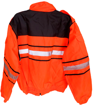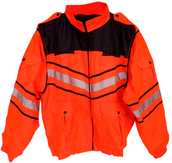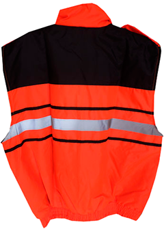Fabricado en tela tiburón repelente, con forro polar interior, cuatro bolsas al frente y tiras de reflejante de 1” textil gris, mangas desmontables.