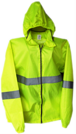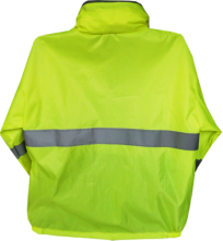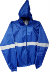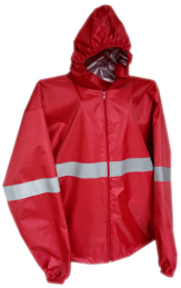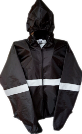 Fabricado en tela Silver repelente con gorro interno, dos bolsas laterales escondidos con reflejante alrededor del cuerpo y en antebrazos con una bolsa interna para guardarse.